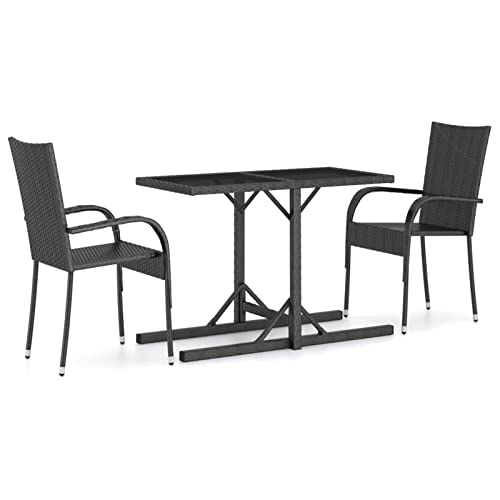 Rantry 3 Piece Garden Dining Set Poly Rattan Black, Dining Table and Chairs, Outdoor Patio Conservatory Balcony Backyard Yard Poolside Furniture Set