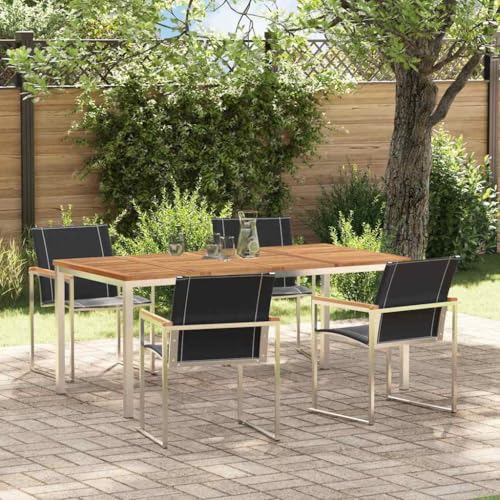 Qnhdfrt 5-Seater Garden Dining Set Solid Acacia Wood 180x90x75 cm Brown Patio Furniture Set for Terrace Outdoor Table and Chairs for Balcony Conservatory