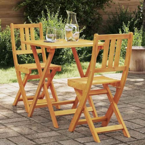 QJBSAVVA 3 Piece Folding Bistro Set Solid Acacia Wood 60 x 60 x 75 cm Foldable Garden Patio Furniture Table and Chairs for Balcony Conservatory Outdoor Dining