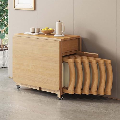 ZHJOPP Movable Folding Dining Table and Chairs, Modern Expandable, Wooden Folding Table Suitable for Small Space Apartment Kitchen Living Room (C)
