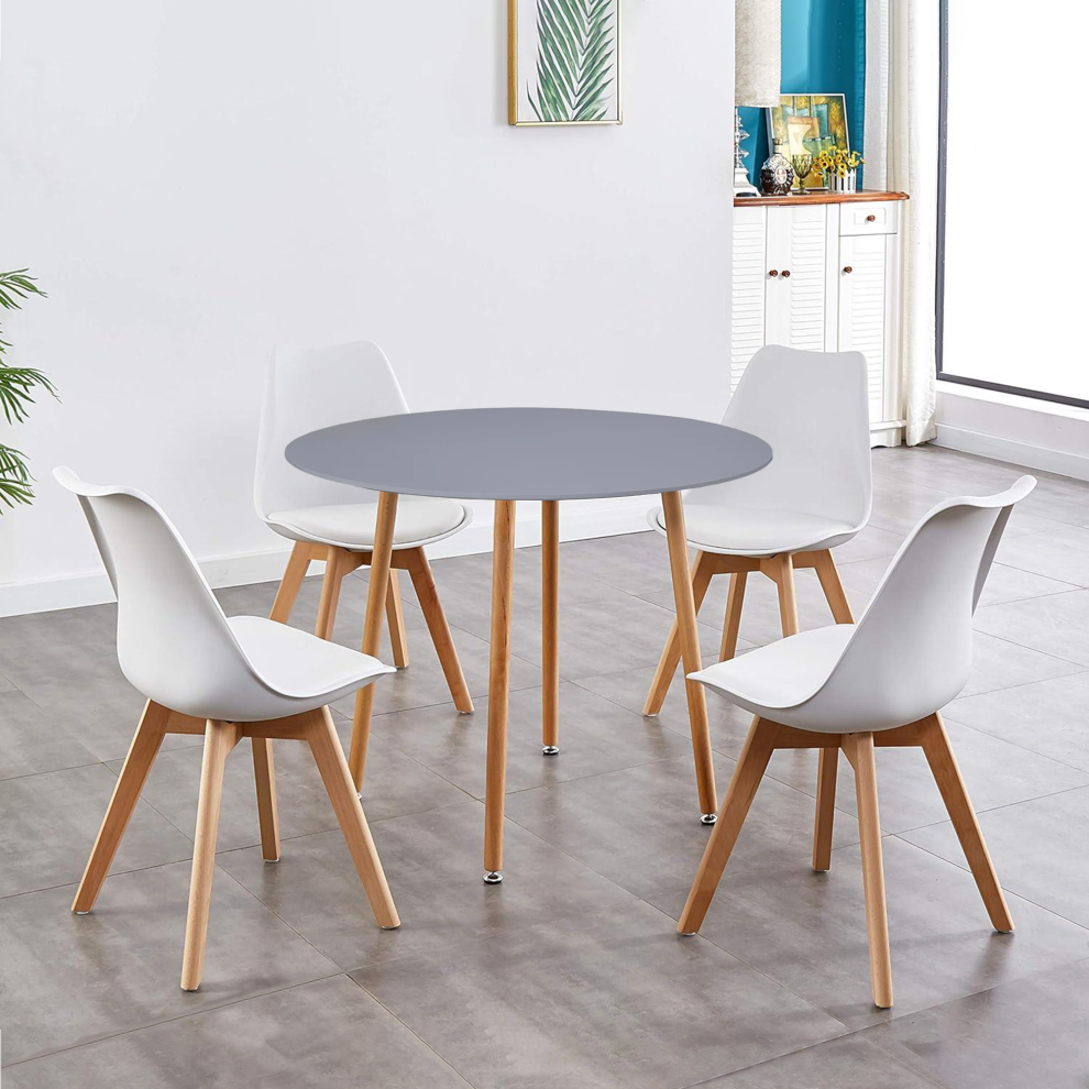 P&N Homewares® Lorenzo Dining Table and 4 Chairs Set Retro and Modern Scandinavian Dining Set White Black Grey Red Pink Green Chairs with Wood Brown Dining Table (GREY)