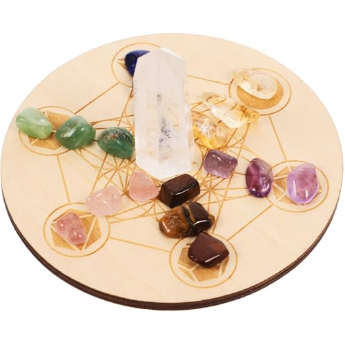 INOOMP Chakra Crystals Healing Stones with Wooden Divination Board Pendulum Crystal Grid Set for Meditation and Home Decoration