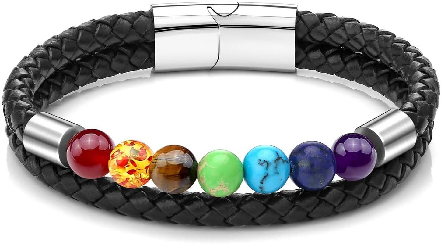 Zysta Natural Crystals Chakra Bracelet Womens 7 Chakra Crystal Stone Gemstone Leather Bracelet