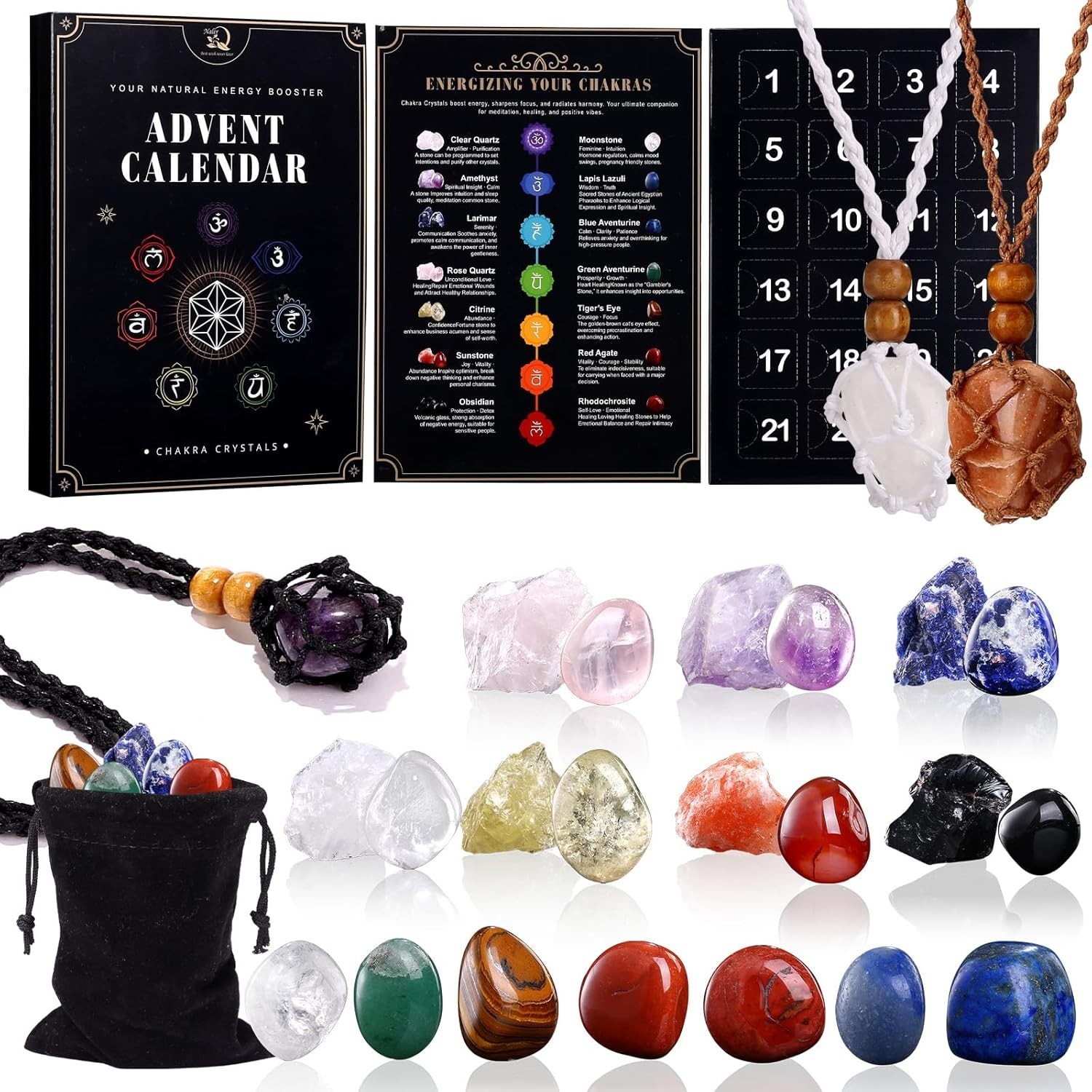 Naler Crystal Advent Calendar 2025 Original 7 Chakra Crystals Adult Natural...