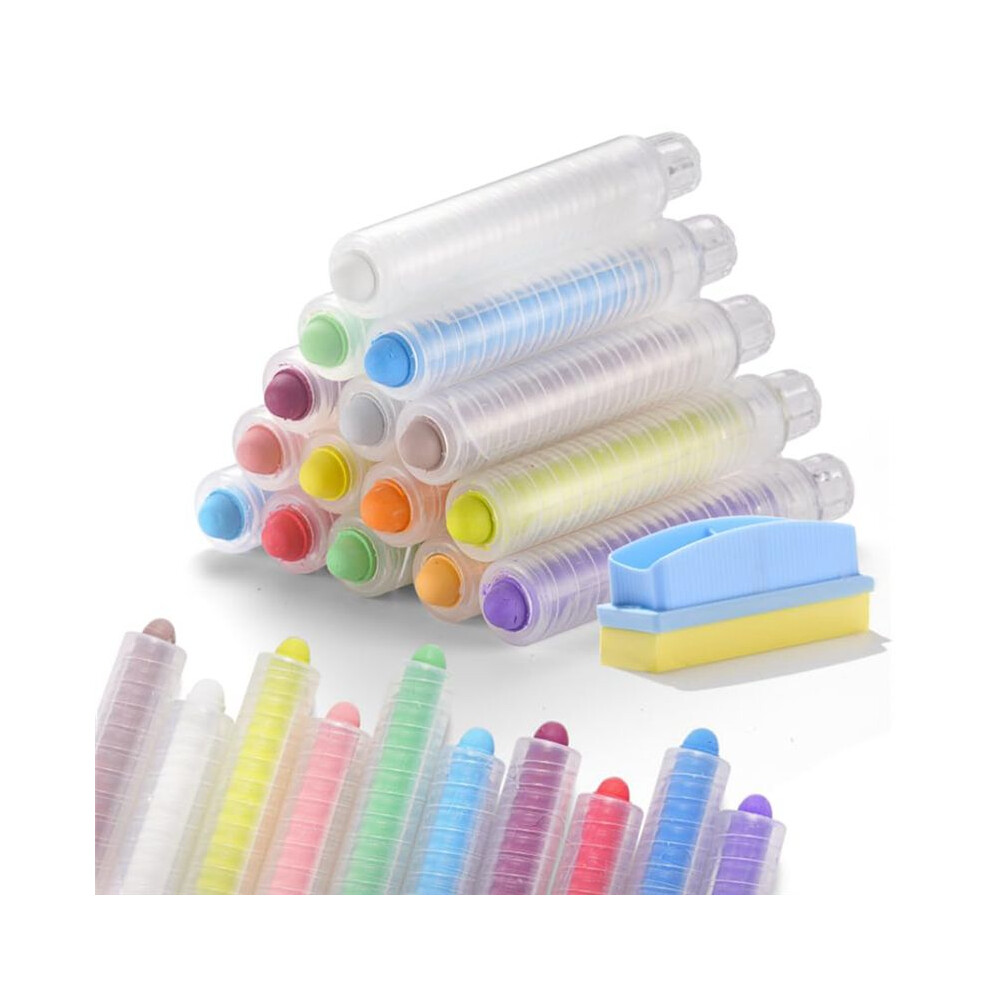 15Pcs Dustless Chalk Set with Chalkboard Eraser, Colored Chalk with Holder,Color Sidewalk Chalk for Kids, Chalk Paint