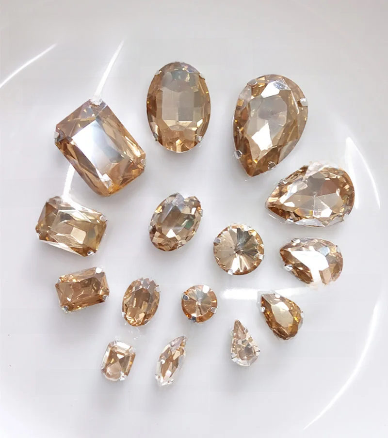 All Styles&Shapes Sew on Metal Base Buckle Golden Champagn Rhinestone Crystal Garment/jewelry/wedding dress shoe bag Sewing Bead