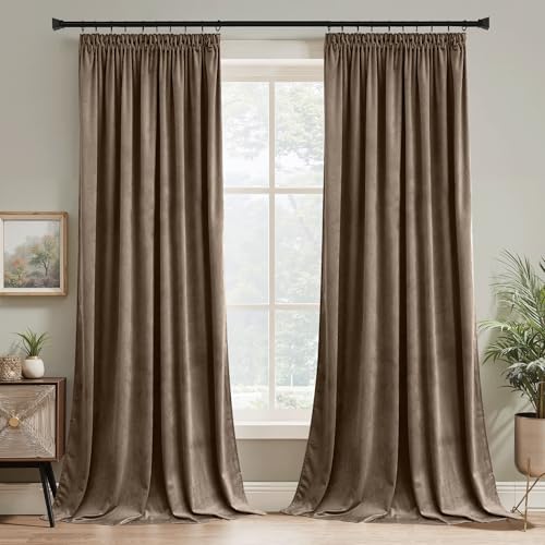 BULBUL Champagne Velvet Curtains 108 Inch Length - 2 Panels Blackout Window Drapes for Living Room and Bedroom, Beige Thermal Insulated Room Darkening Decor With Grommets
