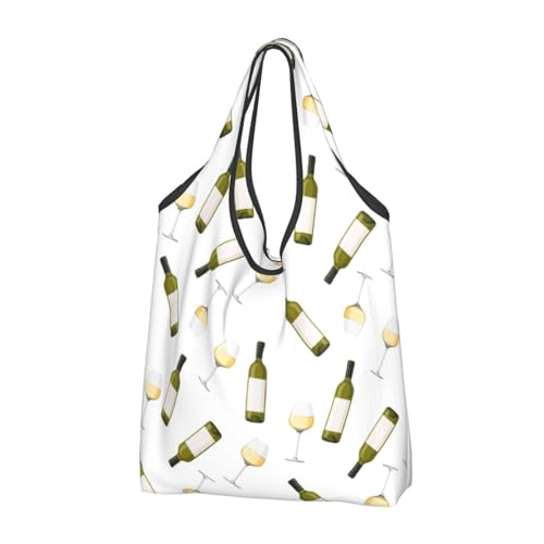 Reusable Grocery Bags Shopping Bags, Foldable Champagne Bottle And Glasses Grocery Bag Tote Bag with Handles