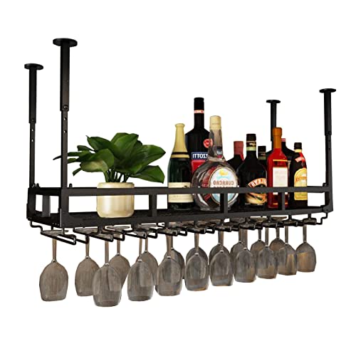 XCHSXYL Hanging Wine Rack Ceiling Iron Wine Bottle Storage Shelf With Stemware Champagne Glasses Holder,for Under Cabinet, Home,Kitchen, Bar,Wall Mounted (Size : 120x35cm(47x13inch))