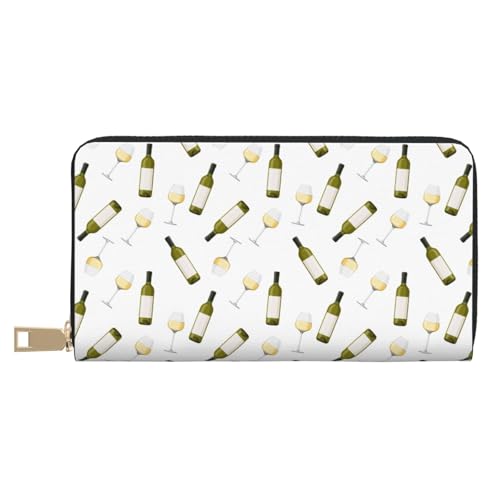 AQRJLPM Two Glasses of Champagne Wallet Leather Zipper Around Clutch Wallet Large Capacity Purse with Wristlet Strap, white, 20.0*10.5cm, Wallet