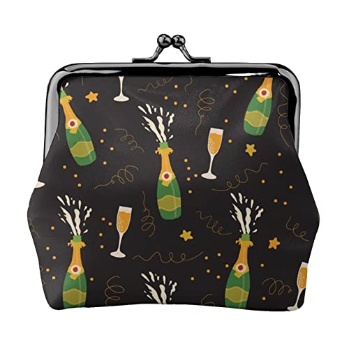 Champagne Bottles and Glasses Women's Leather Coin Purse, Small Change Pouch with Kiss-Lock Clasp Closure Buckle Wallet for Girl Gift