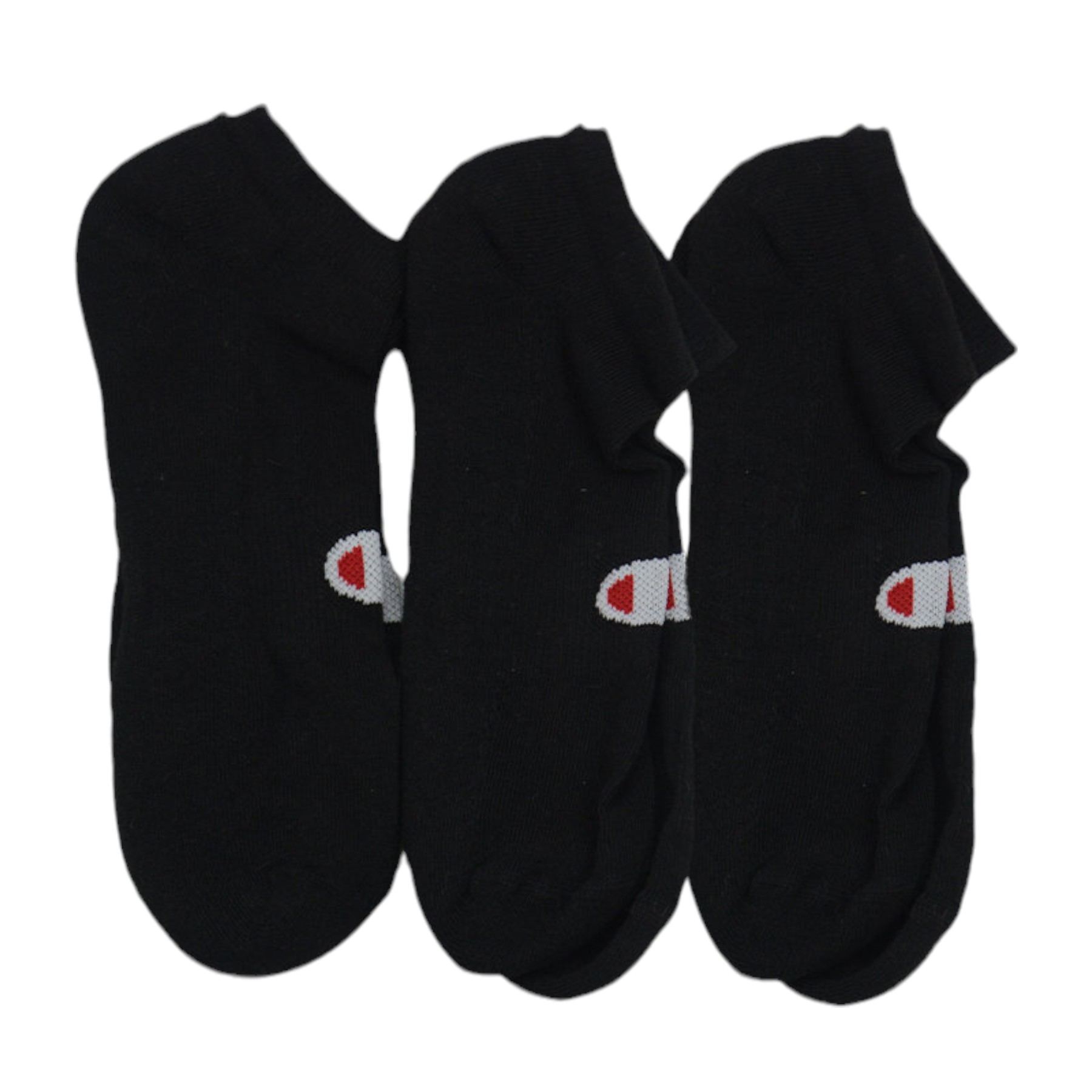 Champion Mens Low Cut Socks 3 Pack Regular Soft Cotton Gym Sports Trainer - Black - One Size