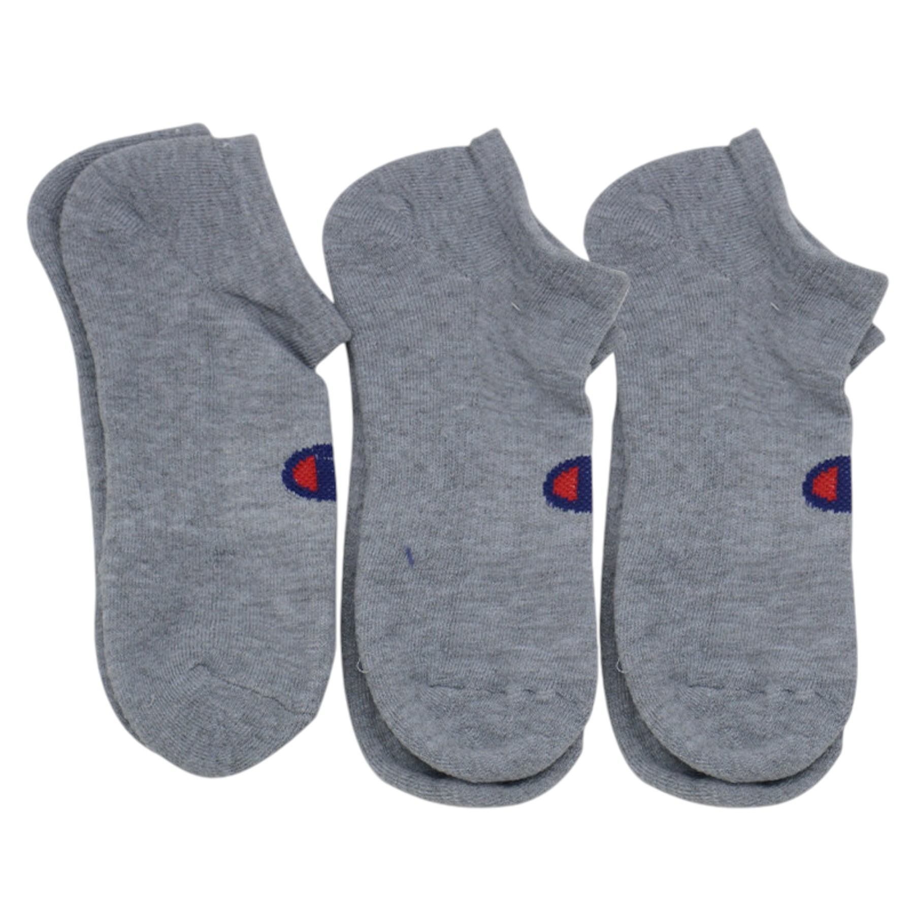 Champion Mens Low Cut Socks 3 Pack Regular Soft Cotton Gym Sports Trainer - Grey - One Size