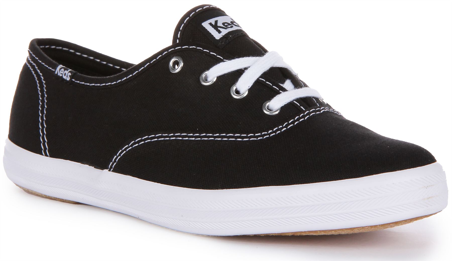 Keds Champion Low Top Lace Up Casual Canvas Shoe Black Womens UK 2- 9