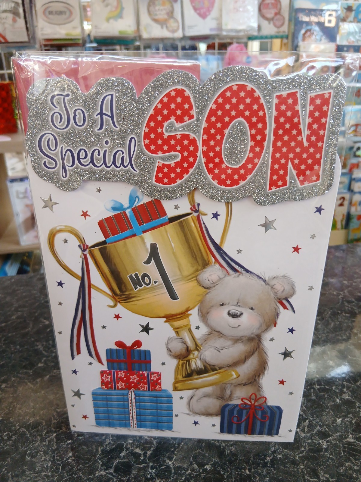 SPECIAL SON BIRTHDAY CARD CHAMPION CUP NO.1 CUTE INSERT 9" X 6" FREEPOST