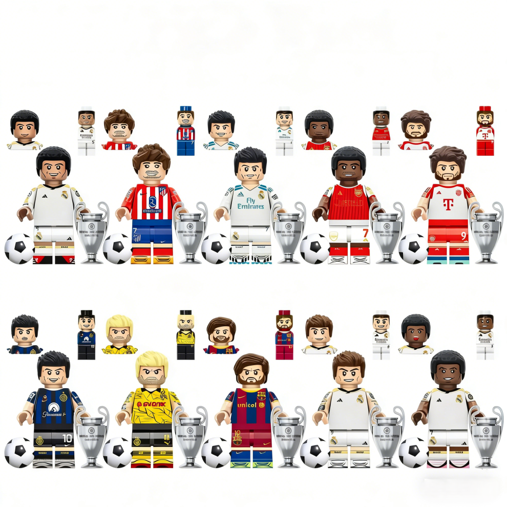 10 PCS Small Building Blocks Football Players with Champions League Trophy