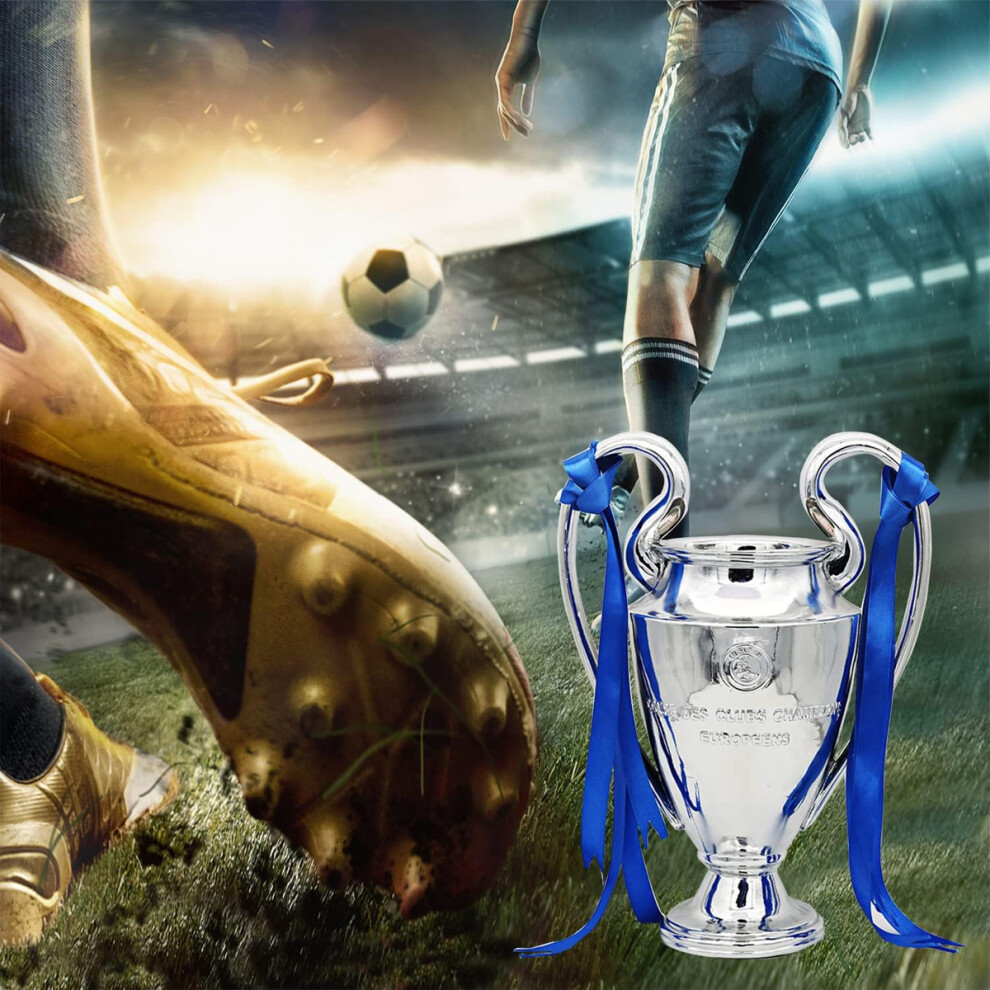 Champion Trophy for Football Fans, Football Fan Collection High Reproduction Resin Replica of UEFA Champions League Cup with Silver and Blue Ribbon,