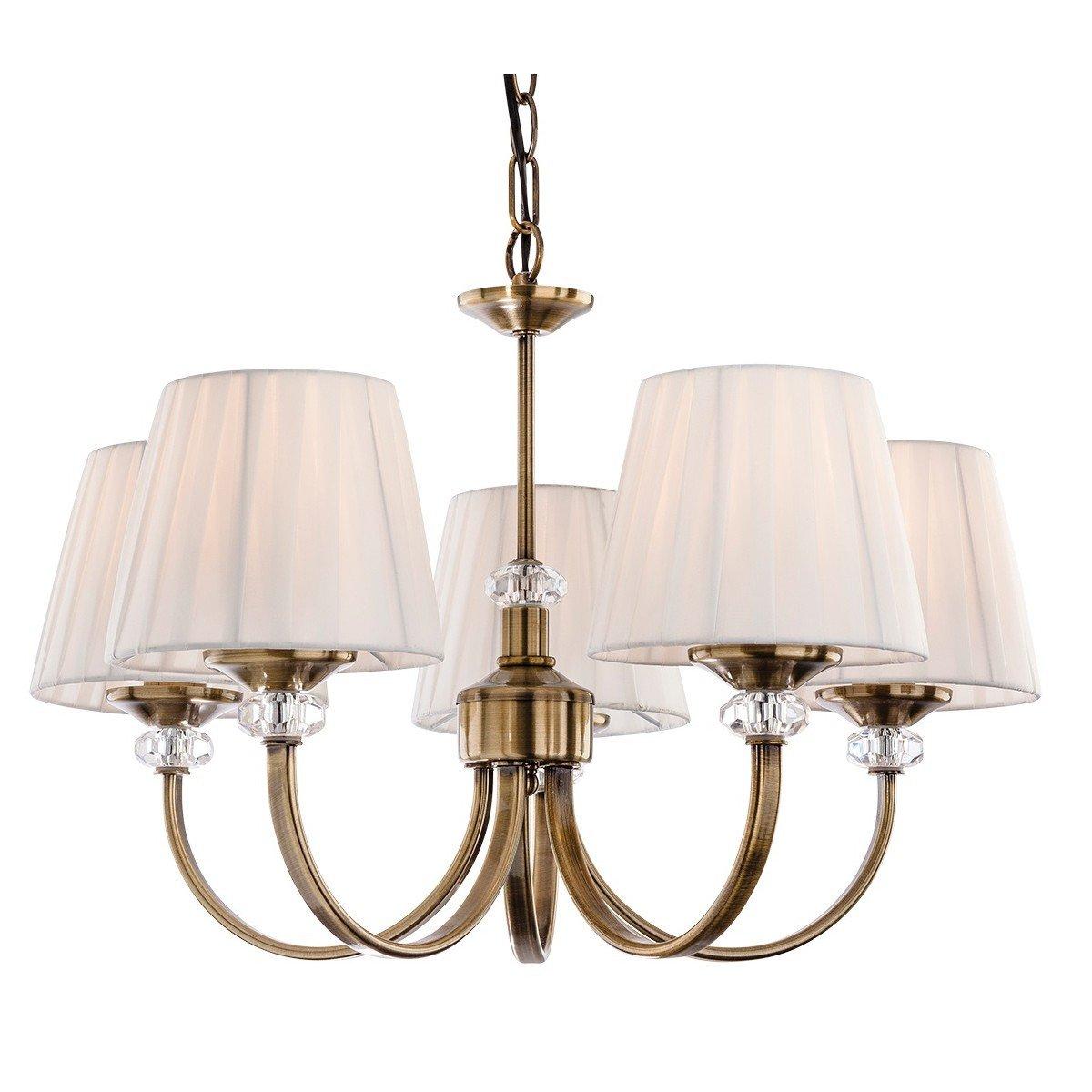 Esher Ceiling Pendant Chandelier Brass Crystal & Beige Shades 5 Lamp Light