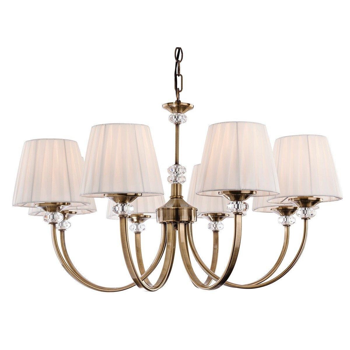 Langham 8 Light Multi Arm Chandelier Antique Brass Pleated Cream Shades E14