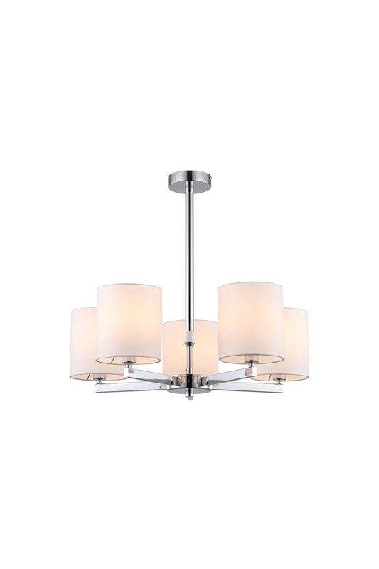Abbots 5 Light Chandelier Lamp In Chrome With White Cotton Shades