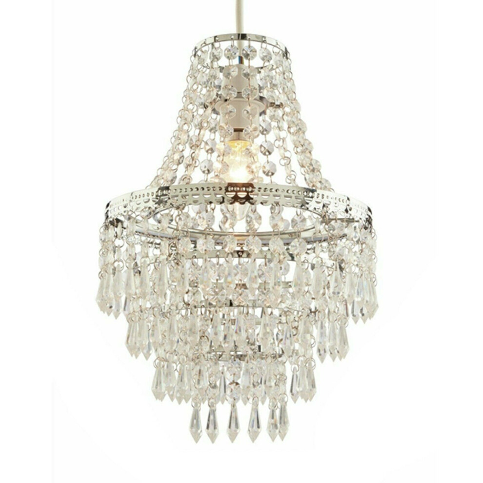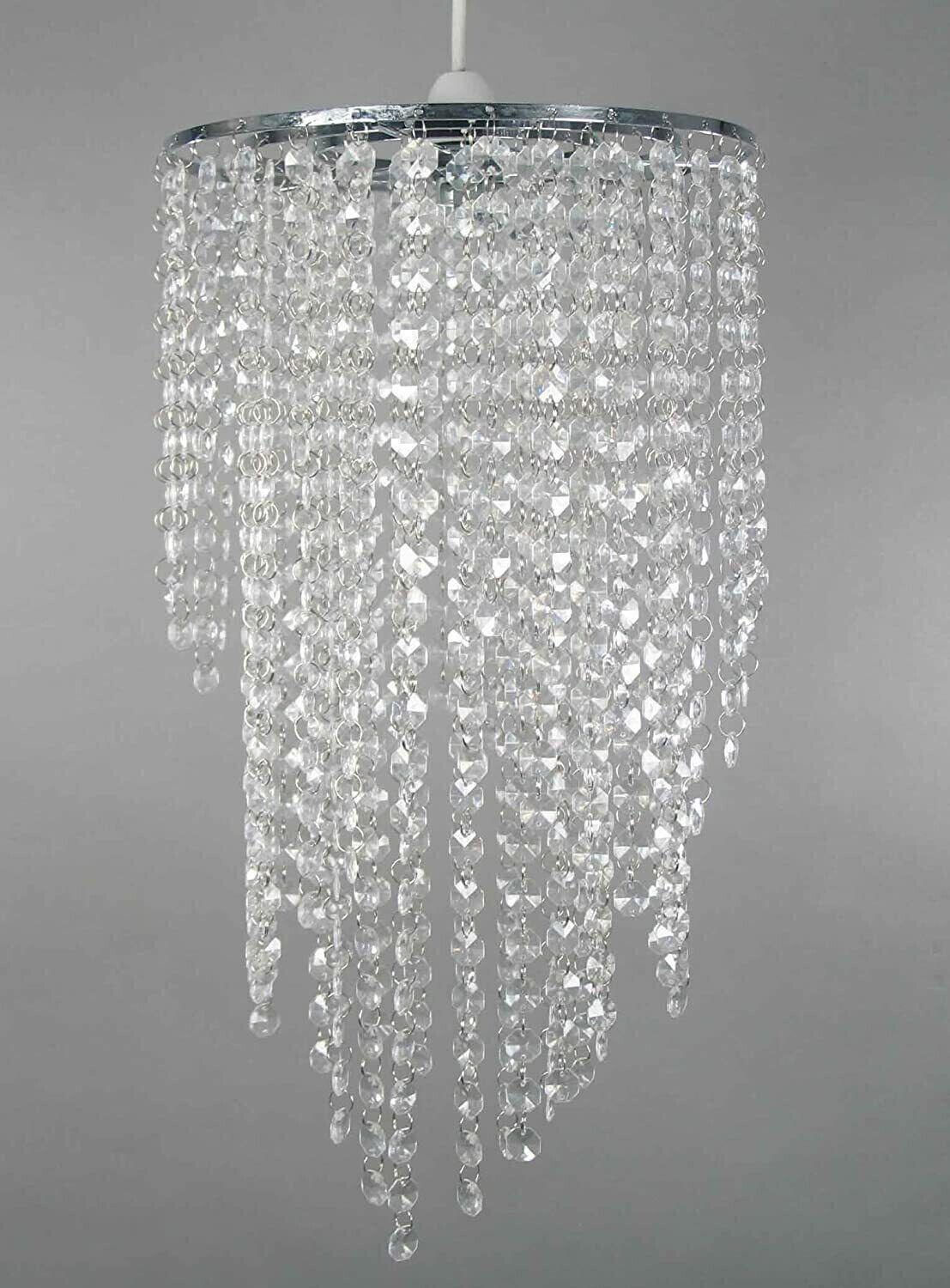 (MADISON CHROME ) Modern Chandelier Ceiling Light Shades Acrylic Crystal Droplet Pendant Lampshade