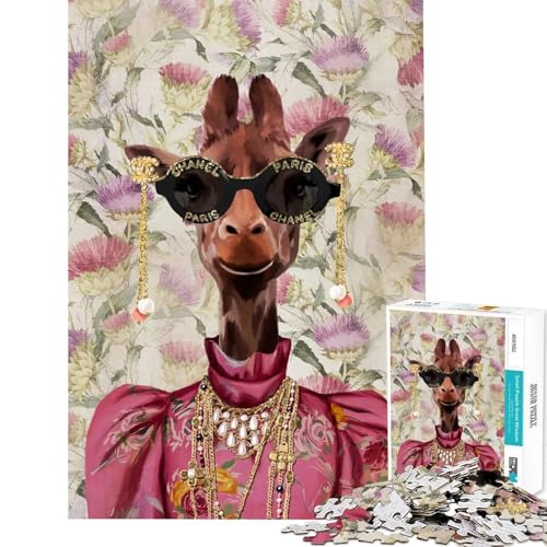 1000 Piece Jigsaws for Teenagers Puzzle Giraffe in Chanel Sunglasses Mental Challenge Toy Tight Fit Play Quiet Game Time Warm Gift (38x52cm)