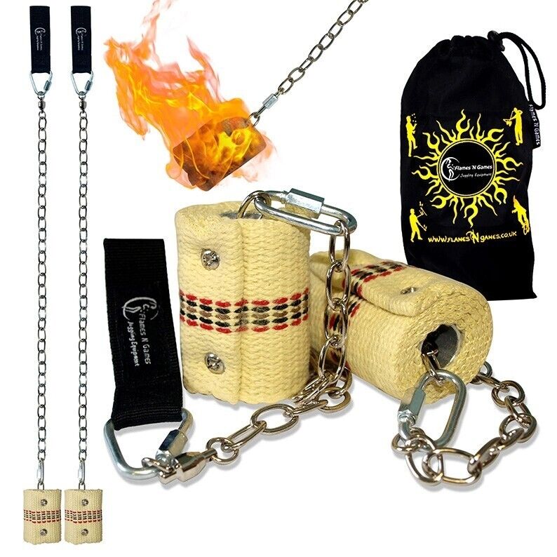 Flames N Games 65mm Chanel Fire Poi Set - with Kevlar Wick - FNG