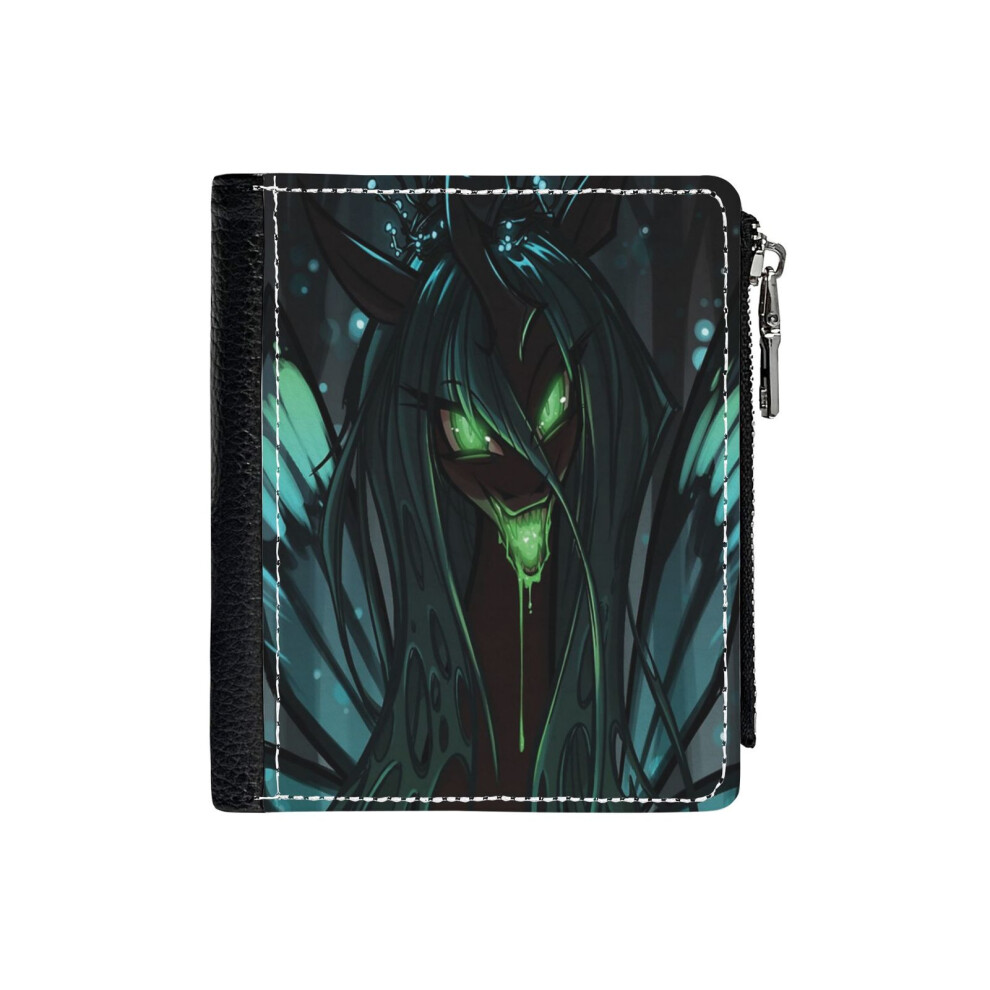 (Chrysalis - Changeling Queen_584) Men's Women PU Leather Wallets Compact Bifold with Zipper & Multiple Card Coins Slots Black Stylish Durable Graphic