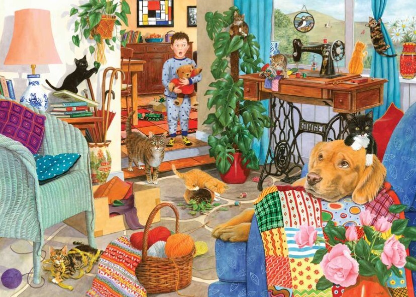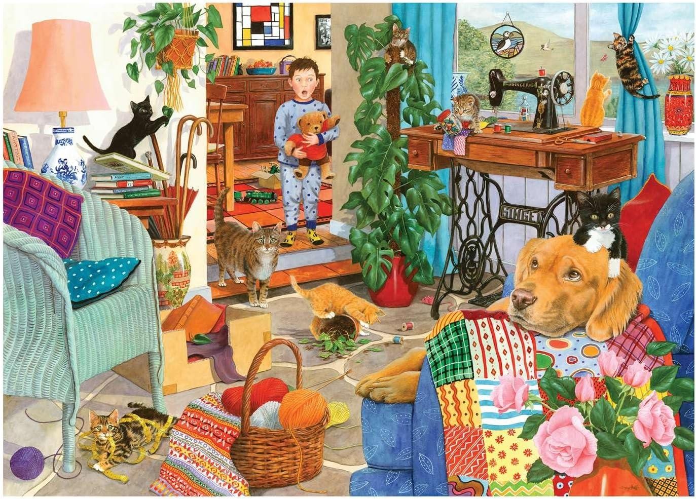 The House of Puzzles Kitten Chaos Jigsaw - 1000 Piece Jigsaws For Adults, Artist Illustrated, Scenic Landscape, Deluxe Puzzle Gifts