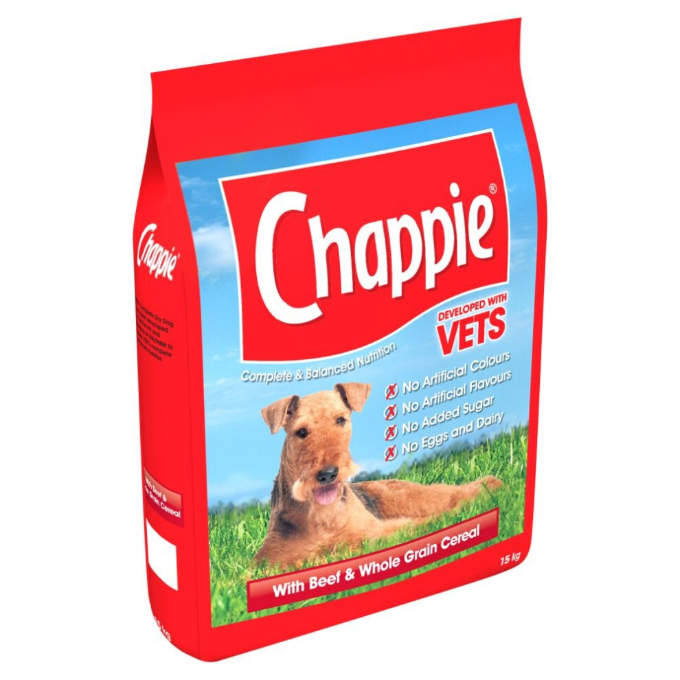 Chappie Complete Beef & Wholegrain Dry Dog Food 15kg - Vet Developed, 100% Balanced, No artificial colours/flavours, No sugar, No eggs/dairy (274150)