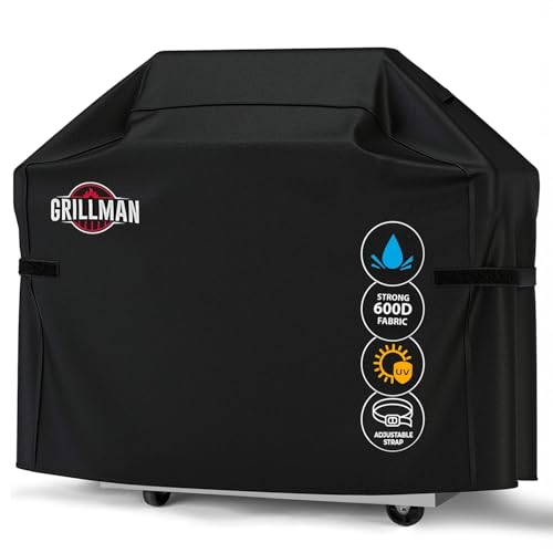 Grillman Grill Barbecue Covers, Heavy Duty Gas BBQ Cover for Weber, Brinkmann, Char Broil, Outback and more. Rip-Proof, UV, Waterproof BBQ Covers (132 L x 66 W x 109 H cm, Black)