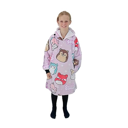 Squishmallows Character World Hugzee Oversized Wearable Hooded Fleece | Super Warm and Cosy Sherpa Lined, Design | Perfect For Kids Aged 7-12 Years, One Size Suggested Height 85cm+