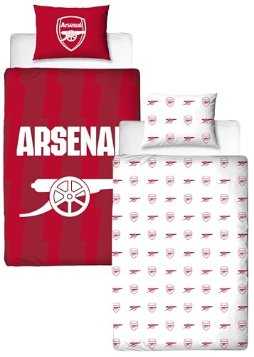 CHARACTER WORLD Arsenal FC Official Single Duvet Cover Set, Lightning Design | Red Reversible 2 Sided Football Bedding Cover Official Merchandise Including Matching Pillow Case | Polycotton