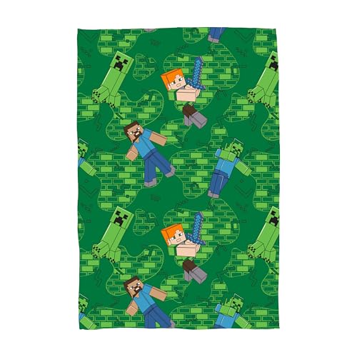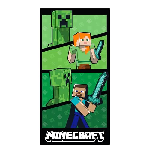 Character World Official Minecraft Towel | Super Soft Feel, Creepers, Alex and Steve Gaming Design | Perfect The Home, Bath, Beach & Swimming Pool | One Size 140cm x 70cm