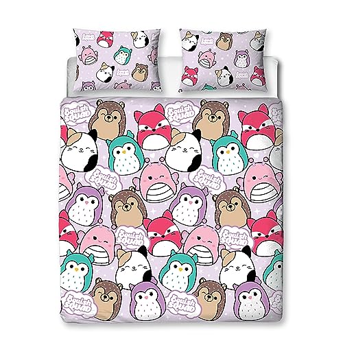 Squishmallows Character World Official Double Duvet Cover Set, Bright Design | Reversible 2 Sided Squish Squad Bedding Cover Official Merchandise Including Matching Pillow Cases