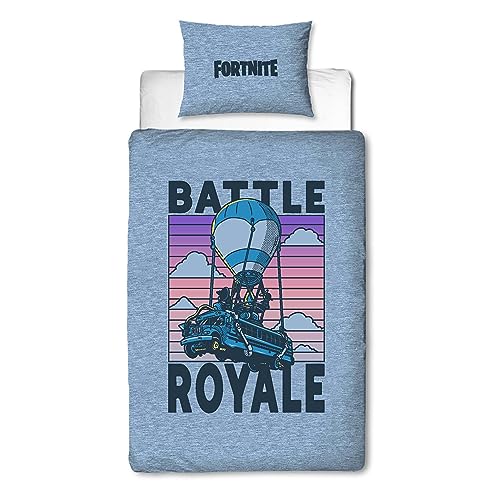 Character World Fortnite Official Single Childs Duvet Cover Set | Battle Royale Design Reversible 2 Sided Bedding Including Matching Pillow Case Single Bed Set | Polycotton, Blue