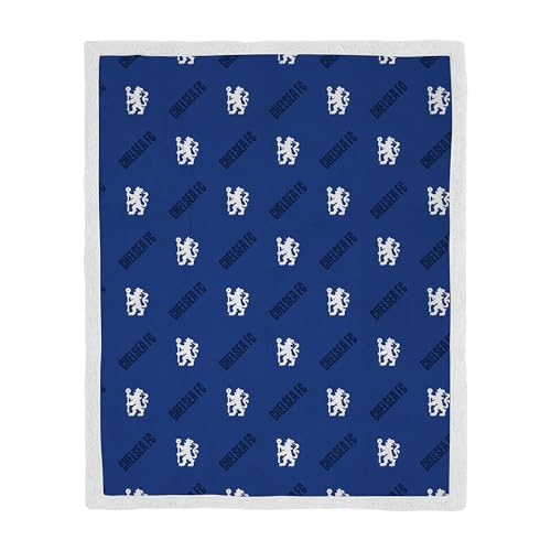 CHARACTER WORLD Official Chelsea FC Fleece Sherpa Throw Blanket | Super Soft, Football Geometric Design | Warm Super Soft Feel Blue Throw | Perfect for Home, Bedroom, Sleepovers & Camping
