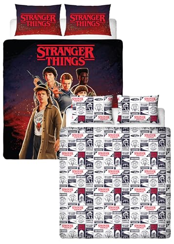 Character World Stranger Things Official Double Duvet Cover | Flames Design, Reversible Easy Care Bedding 2 sided Duvet Quilt Set with Matching Pillow Cases, Multicolour Print
