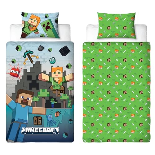Minecraft Character World Official Movie Single Duvet Cover Set | Reversible Bedding with Level Design 2 Sided Includes Matching Pillowcase | Single Set