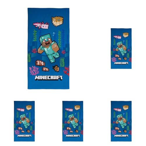 Character World Official Minecraft Towel | Super Soft Feel, Ocean Gaming Design | Perfect The Home, Bath, Beach & Swimming Pool | One Size 140cm x 70cm (Pack of 5)