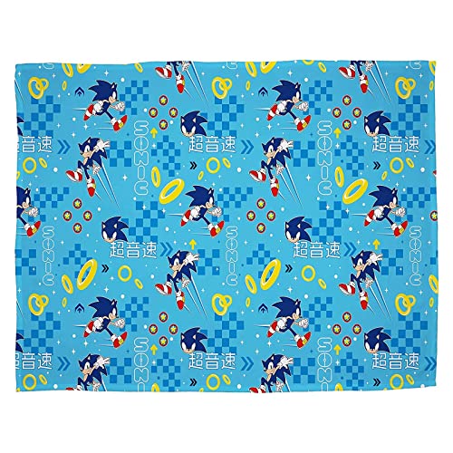 Character World Officially Licensed Sonic the Hedgehog Fleece Blanket | Super Soft Warm Blue Geo Design Throw | Perfect For The Home, Bedroom, Camping & Sleepovers
