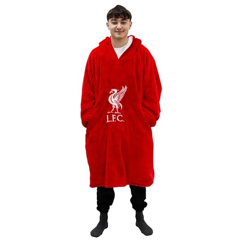 Character World Hugzee Oversized Wearable Hooded Fleece | Super Warm and Cosy Premium Sherpa Lined, Liverpool FC Redout Design | Perfect For Teens, Women and Men, One Size Suggested Height 110cm+