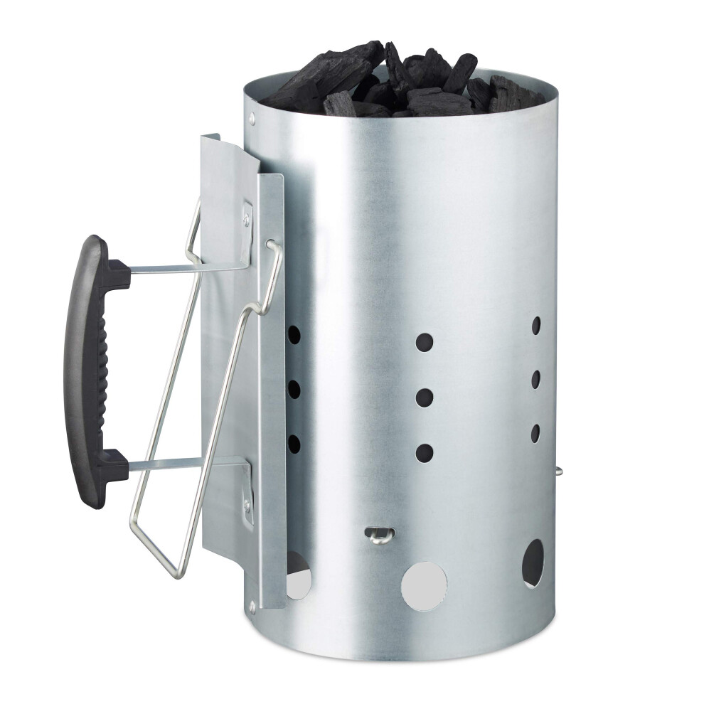 Relaxdays XL Charcoal Chimney Starter, Steel, BBQ Lighter, Stove, Grill, H x Dia: 30 x 19 cm, Grill Ignition, Silver
