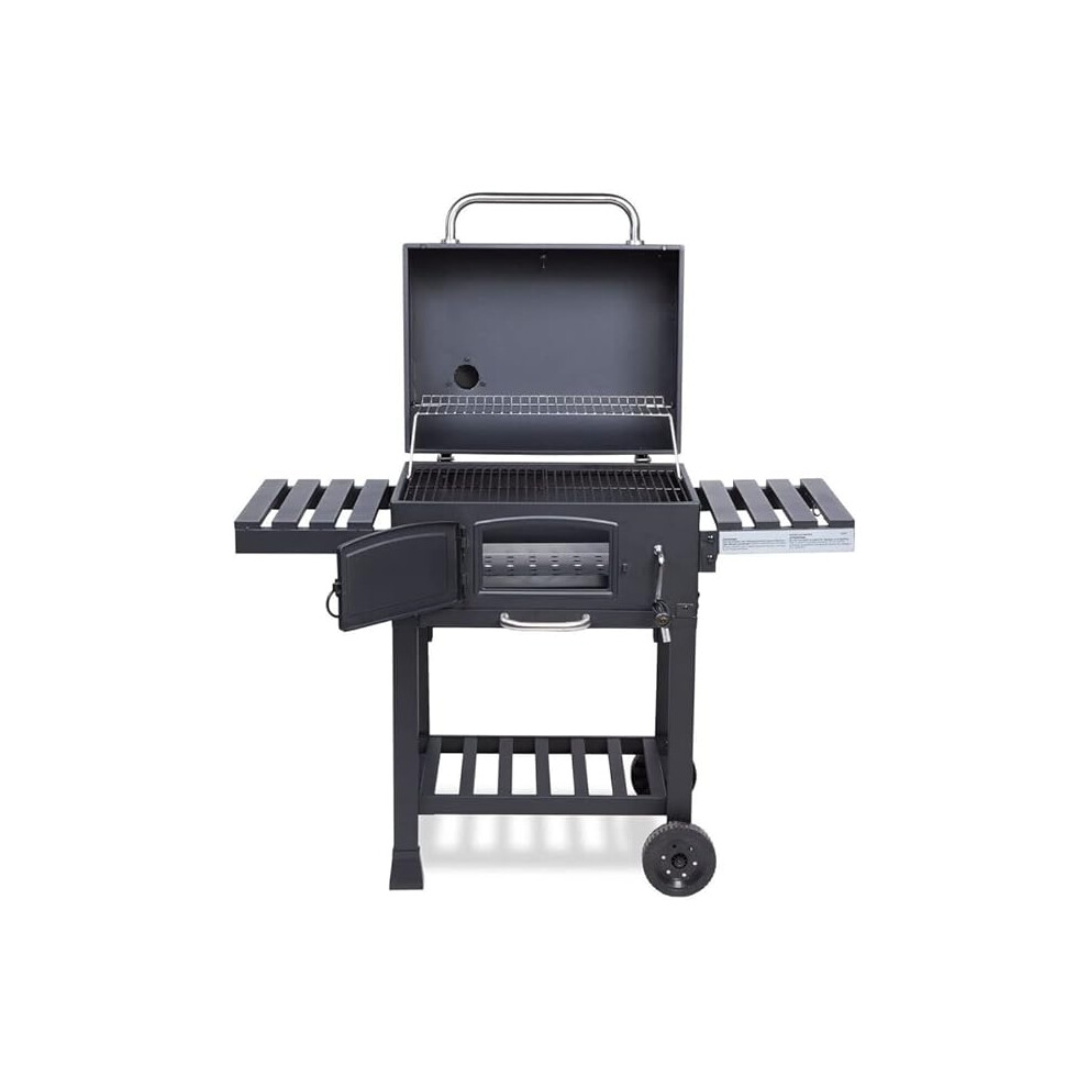 Outdoor Jr. Smoker Barbecue Charcoal Portable BBQ Grill, Built-in Thermometer, Adjustable Charcoal Pan and Chimney, Wheels, Storage