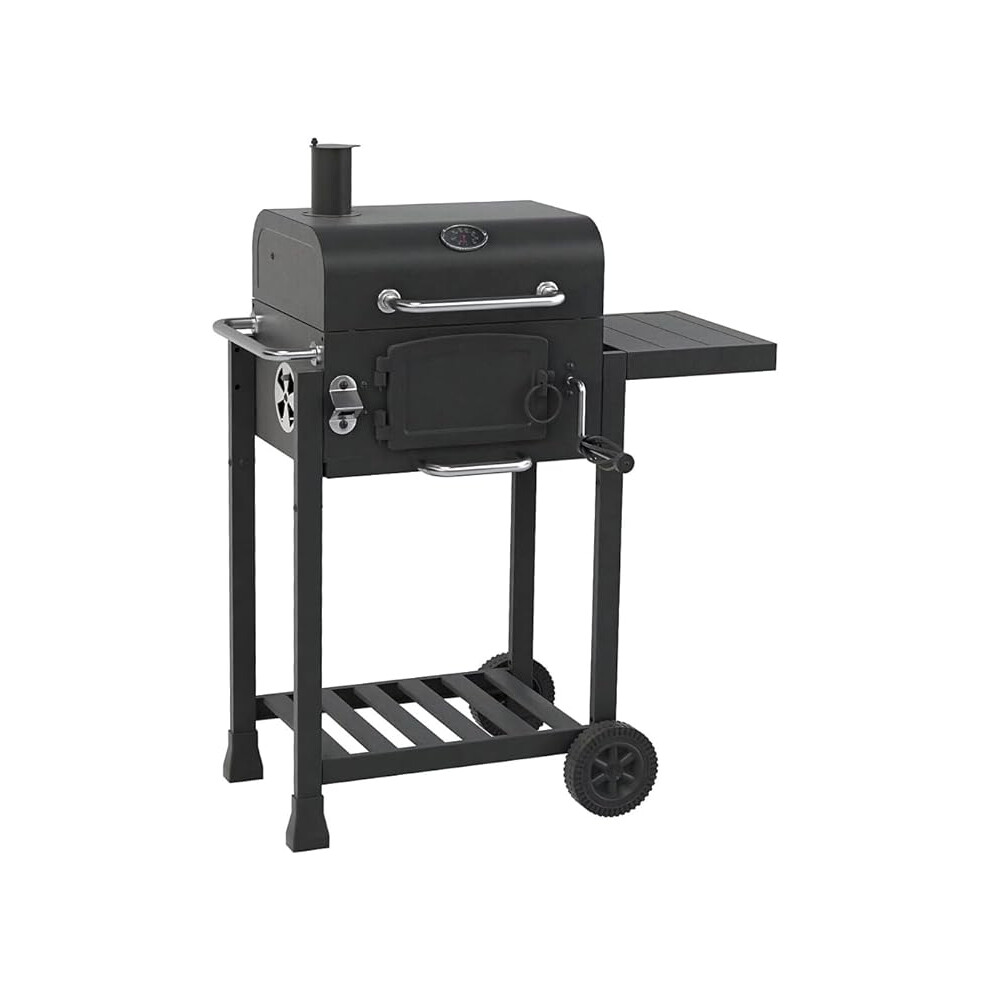 Outdoor XL Smoker Barbecue Charcoal Portable BBQ Grill, 2 Folding Side Table, Built-in Thermometer, Adjustable Charcoal Pan & Chimney, Wheels