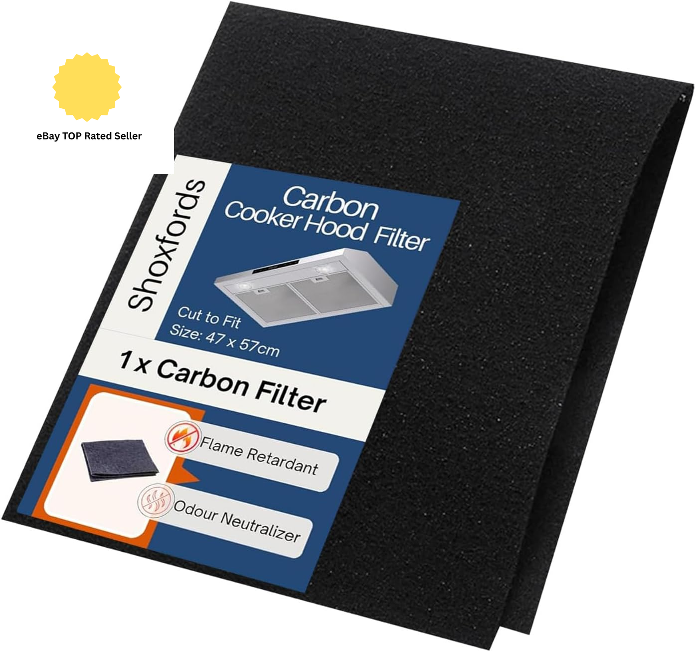 Shoxfords Carbon Cooker Hood Filter – Universal Cut to Fit Activated Charcoal Filters for Cooker Hood 47×57cm – Anti Odour High-Absorption Extractor Fan Filters – Flame-Retardant Made in Germany
