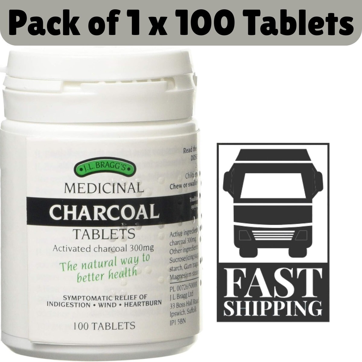 J.L Bragg's Charcoal Tablets Relieves Indigestion, Wind & Heartburn Fast Relief
