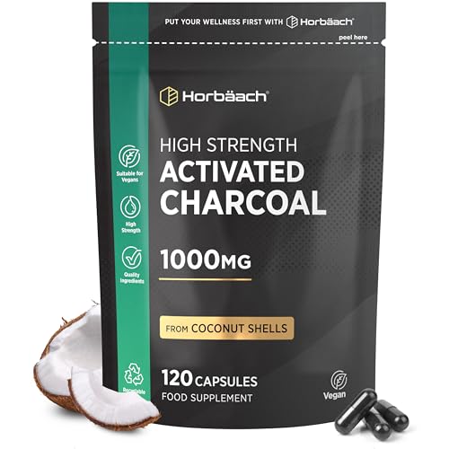 Activated Charcoal Capsules | High Strength 1000mg | Supplement from Natural Coconut | 120 Vegan Tablets | by Horbaach