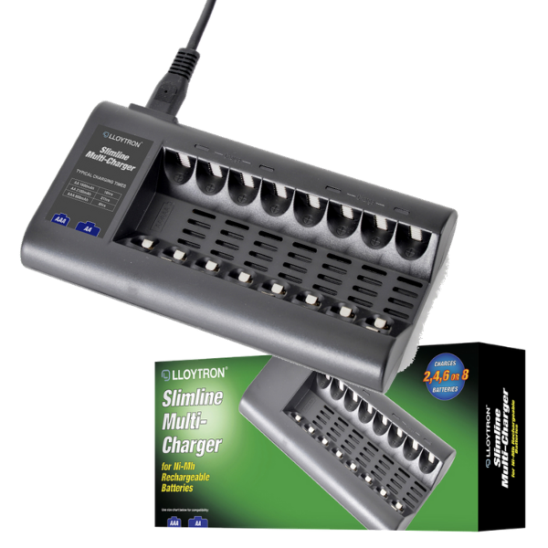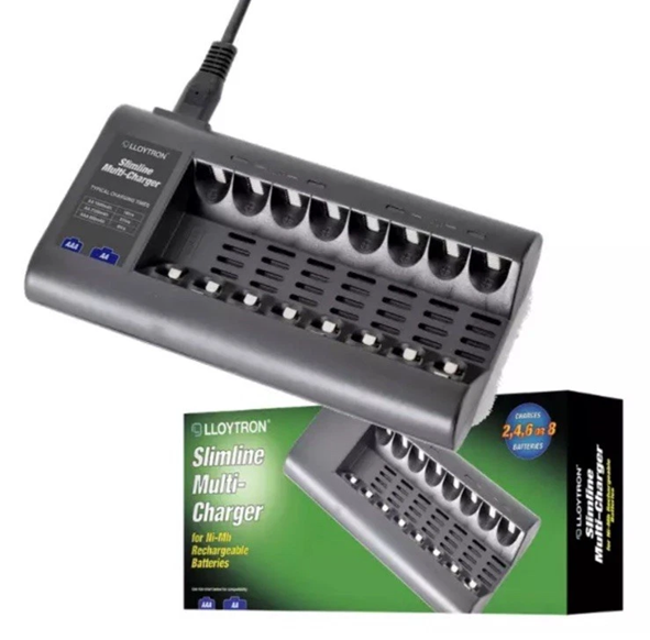 LLOYTRON 8 SLOT SLIMLINE MULTI-CHARGE FOR AA AAA NiMH BATTERIES RECHARGE - B1507
