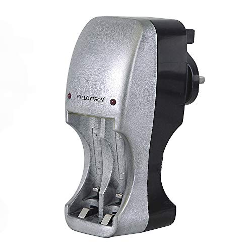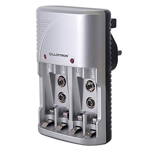 LLOYTRON Compact AA / AAA / 9v (PP3) Battery Charger for NiMh / NiCd Rechargeable Batteries ? Charge 2 or 4 Batteries at Once ? B1502 - Silver